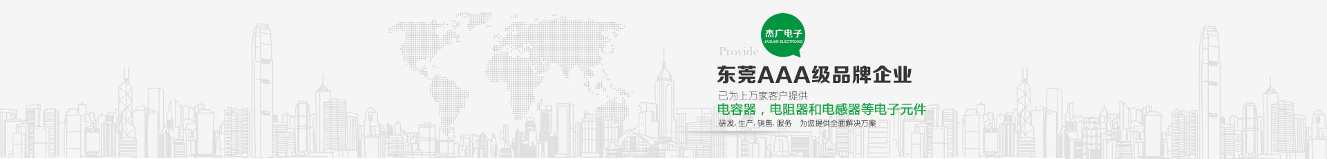 東莞市杰廣電子有限公司是一電子元件之專業(yè)制造廠 ,銷售遍及世界各地,主要產(chǎn)品包括:電容器,電阻器和電感器等電子元件,以供應(yīng)汽車,通訊,電腦,音響,影像,電動(dòng)工具,儀表,以及軍用電子等工業(yè)之電子元件使用。